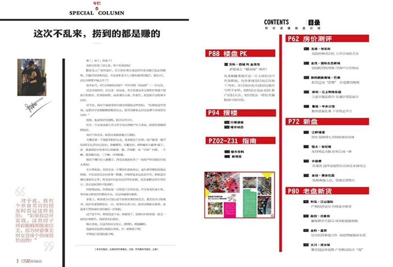 主要栏目:本期关注、热点追踪、区域关注、楼盘PK。